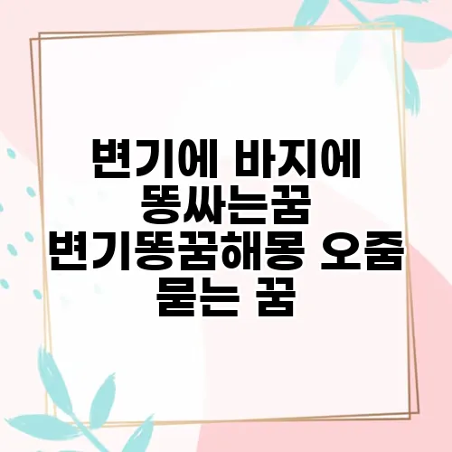꿈은 우리 마음의 상징적인 표현으로, 변기와 관련된 꿈은 상당히 흥미롭고 다양한 해석이 가능합니다. 특히 변기에 바지에 똥싸는 꿈은 사람들에게 불편한 느낌을 주기도 하고, 여러 해석이 존재합니다. 이번 글에서는 이러한 꿈의 의미와 함께 해몽의 방법을 함께 알아보려 합니다. 궁금하시죠? 그럼 꿈의 세계로 한 걸음 들어가 보겠습니다!