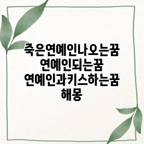 꿈은 우리가 잠을 자는 동안 경험하는 신비로운 현상입니다. 특히 연예인과 관련된 꿈은 많은 사람들에게 흥미로운 주제입니다. 이번 포스팅에서는 죽은 연예인이 등장하는 꿈, 연예인이 되는 꿈, 그리고 연예인과 키스하는 꿈의 의미에 대해 깊이 탐구해 보도록 하겠습니다. 이러한 꿈들은 단지 상상의 산물이 아닌 금전적, 정서적, 심리적 메시지를 전달할 수 있는 중요한 요소들이며, 꿈을 해석함으로써 우리는 내면의 감정상태를 이해할 수 있습니다. 이제 꿈의 다양한 측면을 살펴보겠습니다.